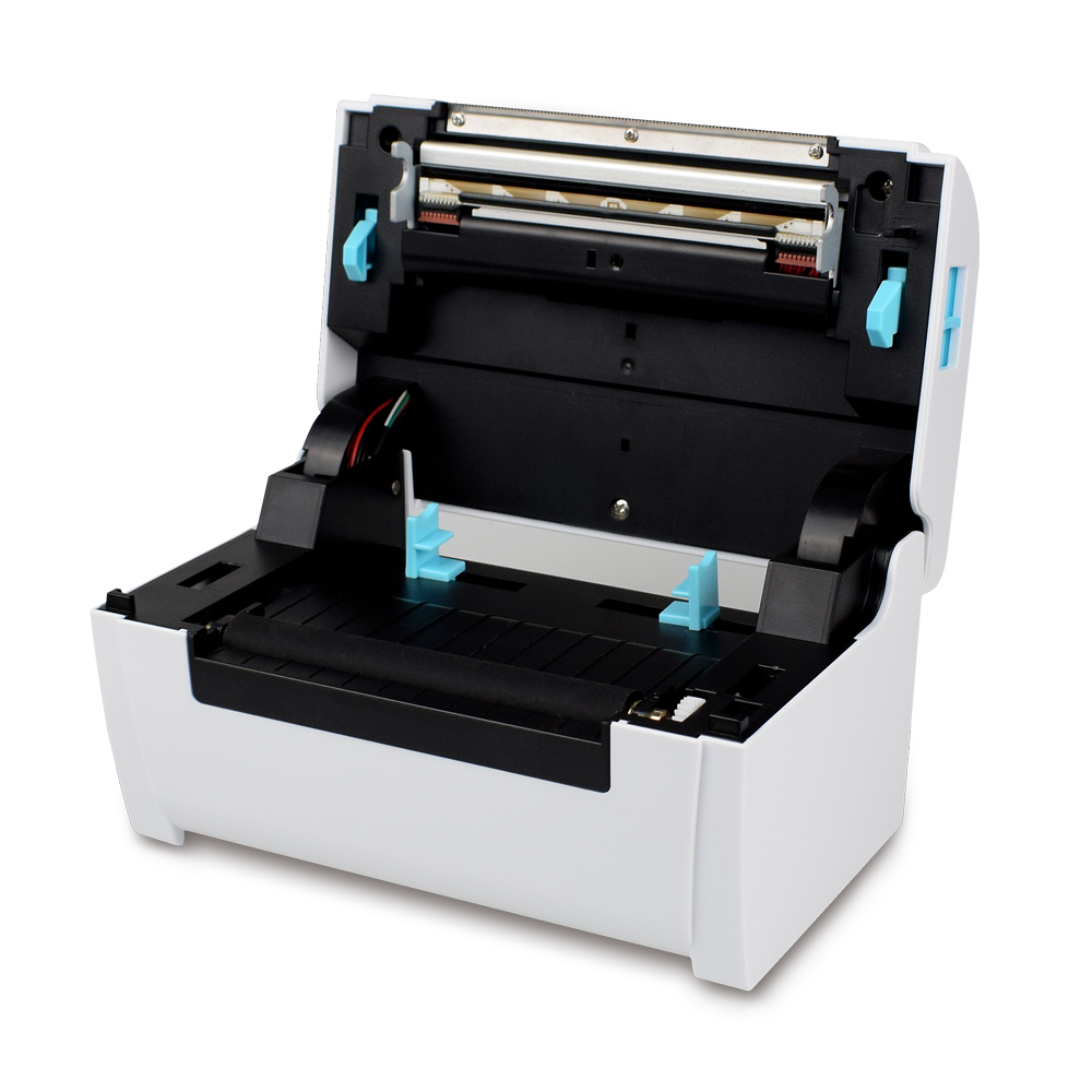 4 inch (110mm) direct thermal label printer, it is high quality and easy-operated design, has head-opened sensor, and with USB / Lan / Bluetooth / Wifi connections.